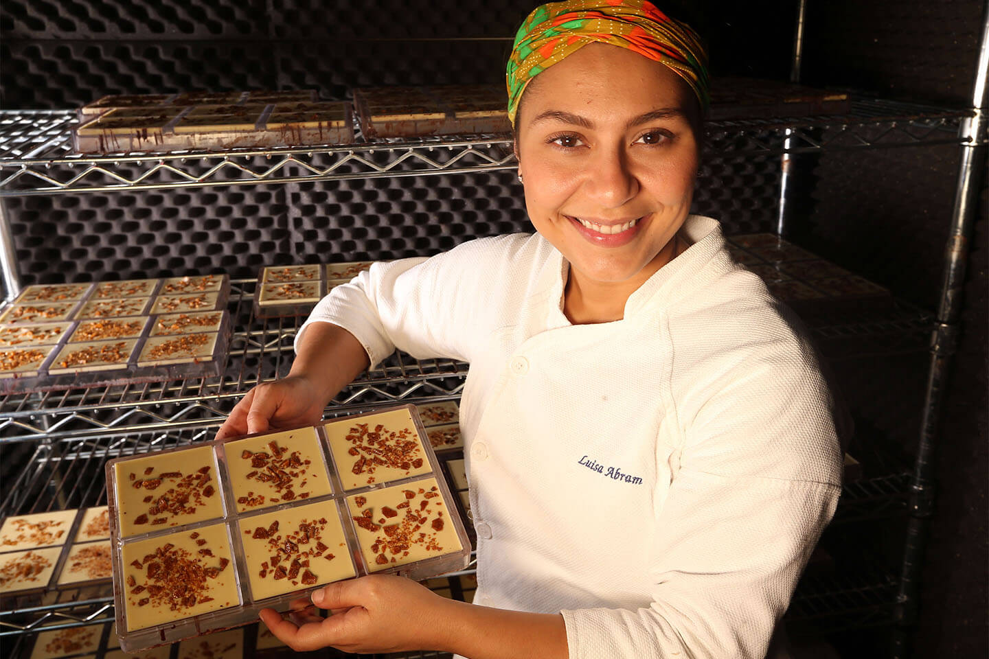 Entre as marcas de chocolate “bean to bar”, Luisa Abram integra um grupo de menor porte. São negócios sem loja própria, que distribuem em supermercados, lojas e eventos.
