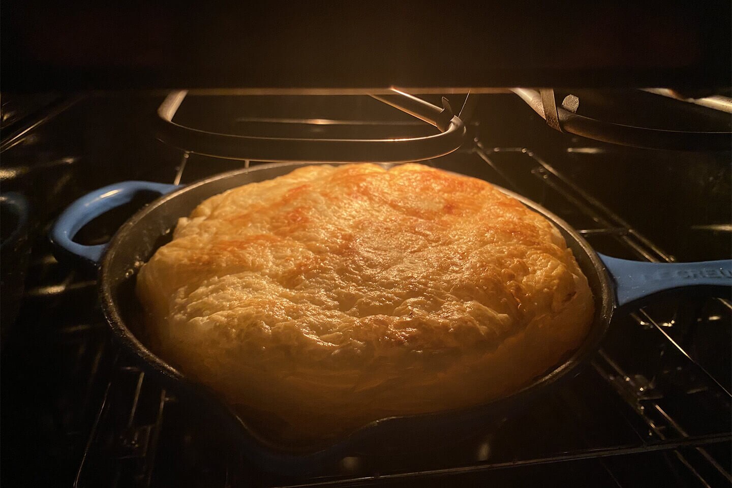Primeiramente, é preciso ter uma frigideira (com cabo que possa ir ao forno) antiaderente. Frigideira na mão, preaqueça o forno a 220°C