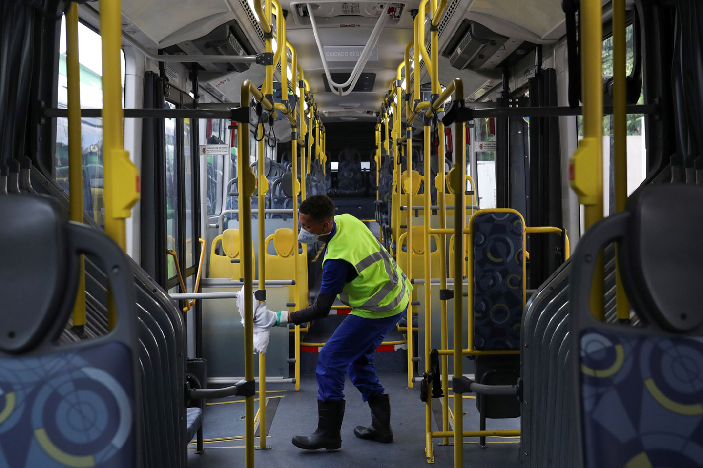 Na cidade conhecida pelos engarrafamentos, o rodízio de veículos foi suspenso e a ordem é para que todos os ônibus sejam limpos ao final de cada viagem
